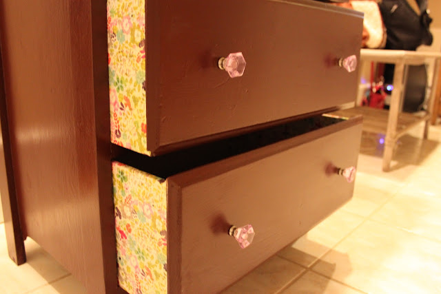 decoupaged the inside of the drawers, so each time she opens one, she’ll get a
